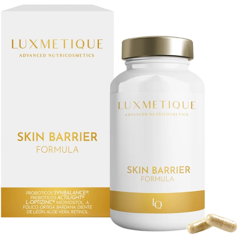 Skin Barrier Formula “el primer paso de cualquier tratamiento antiedad” es un nutricosmético en cápsulas con ingredientes seleccionados para fortalecer la barrera de la piel con 12 activos y 3 patentes exclusivas. Su fórmula, que incluye Synbalance® (probióticos con acción antimicrobiana y antiacné), Actilight® (prebiótico para el microbioma cutáneo) y Optizinc® ZML (zinc que regula el sebo y refuerza la inmunidad), actúa equilibrando la piel desde el interior. Se recomienda tomar dos cápsulas al día, preferiblemente en ayunas.